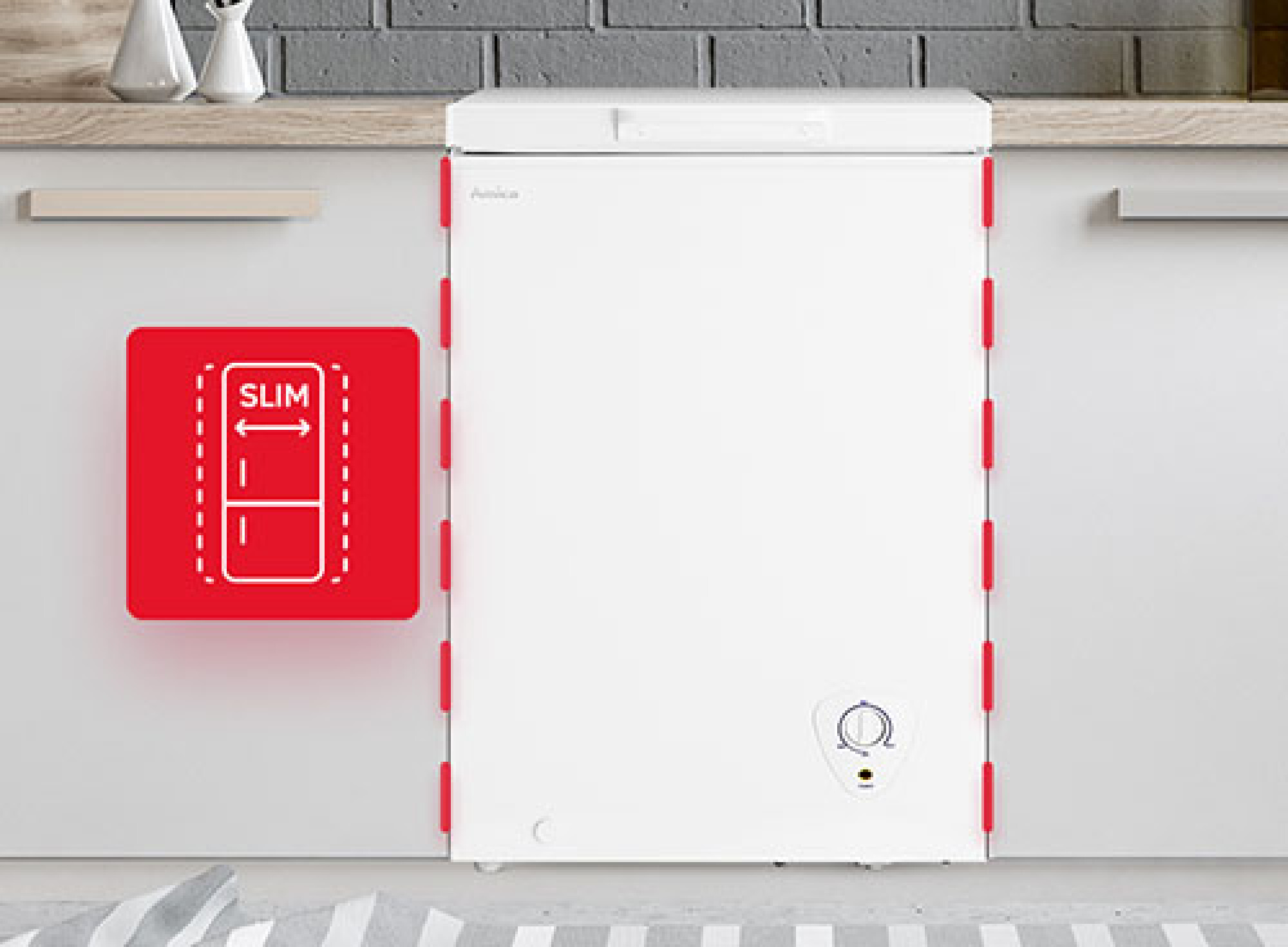 | Quantity of drawers 3 | Quantity of wire bottle shelves 1 | Replaceable door gaskets Yes | Safety Glass Yes | Low noise level Yes | SlimSize Yes | Thermostat setting range 0-7 | Top cover Yes | Fruit and vegetable container 1 |