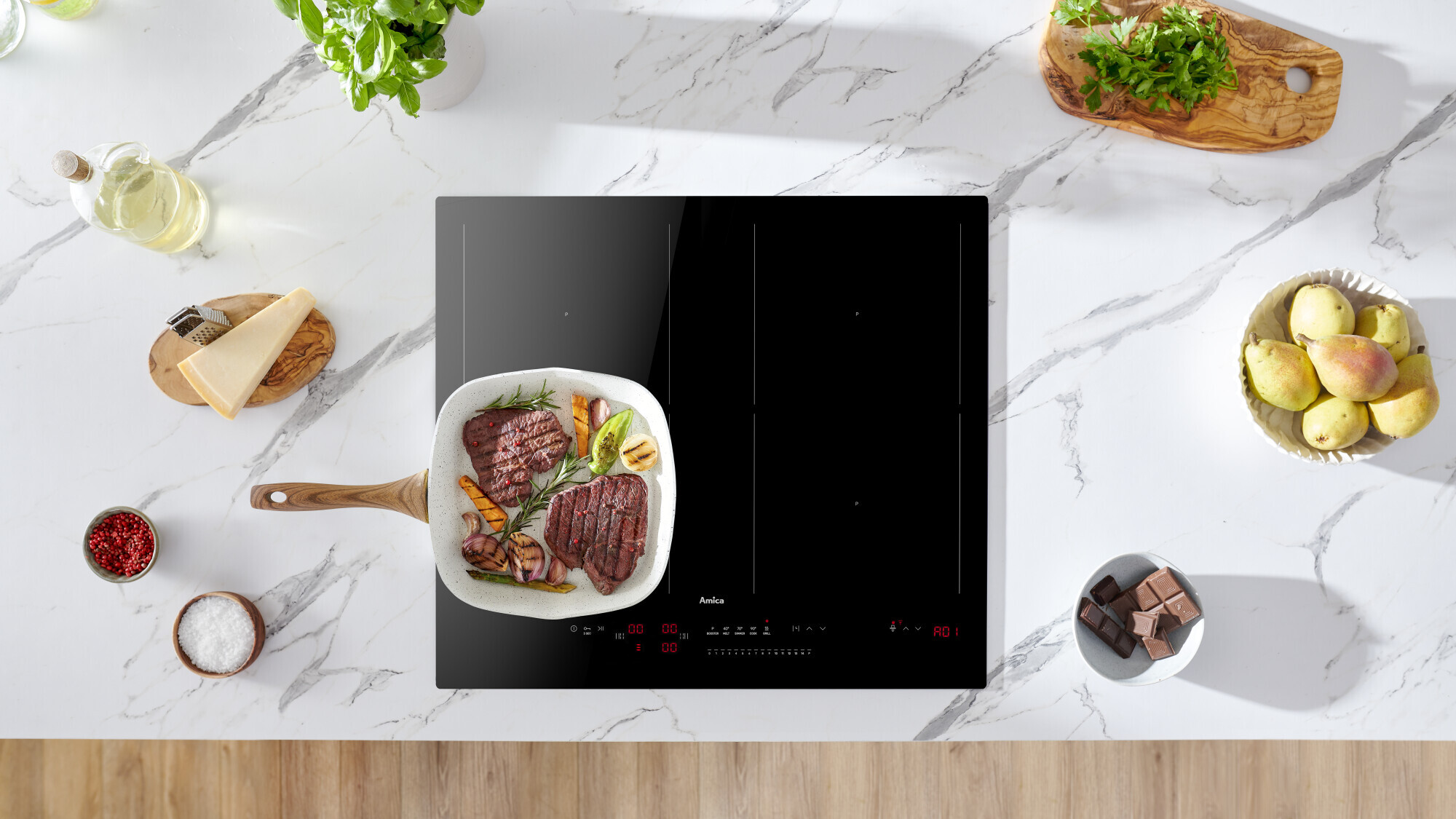 Odredite vrijeme rada ploče za kuhanje. Kada vrije istekne, ploča za kuhanje automatski isključuje zonu zagrijavanja te odašilje kratki zvučni signal. Sada možete koristiti digitalni sat kao programator za kuhanje jaja. S Amica keramičkim pločama za kuhanje, meko kuhano jaje nikada neće ispasti tvrdo kuhano. Preuzmite kontrolu nad vremenom!